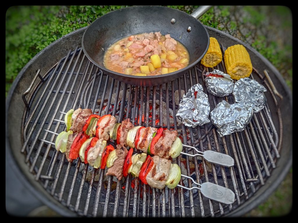 Die Saison wurde mit einem echten Highlight gestartet. Die Spieße machten sich gut, besser war allerdings das Gulasch mit Kasseler. Das angegossene Gemüßesößchen rundete den Geschmack sehr gut ab. Den zusätzlichen Nudelsalat hätte es gar nicht gebraucht. Bin gespannt, wie es dieses Jahr grill-kulinarisch weitergeht.