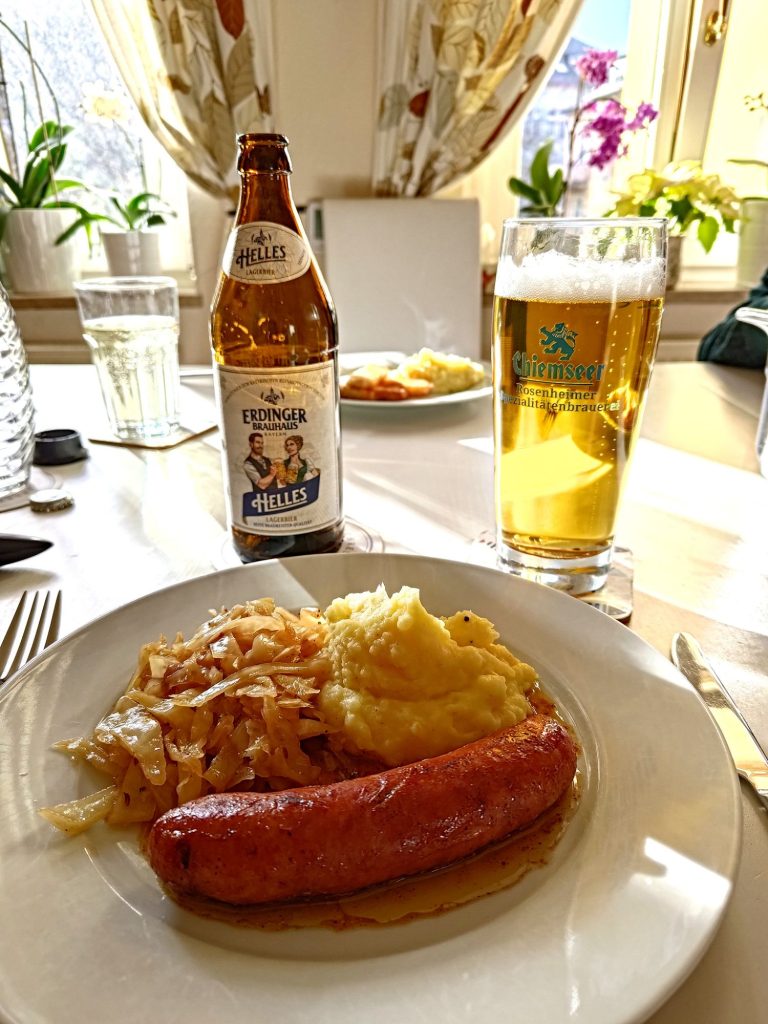 Zu dieser Mahlzeit passte eben so gut wie die Krakauer Wurst ein helles Erdinger.