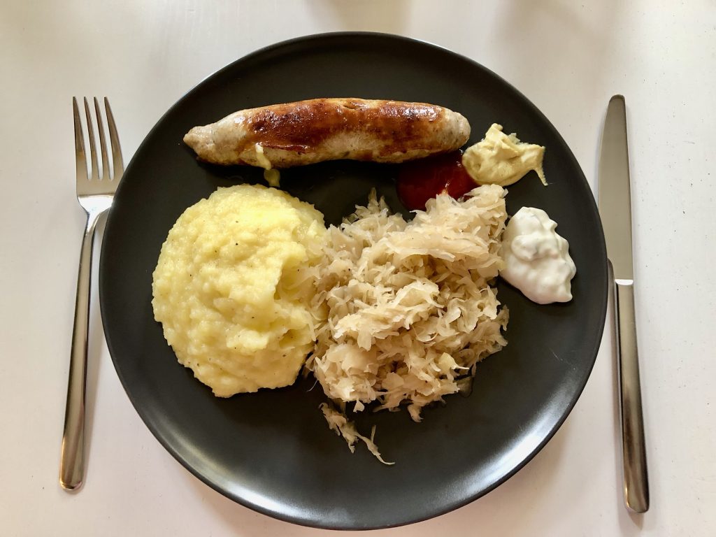 Bratwurst mit Sauerkraut und Kartoffelbrei ist natürlich auch ein Gericht, was ich nur für mich (und maximal meinen großen Sohn) machen kann. Da die anderen beiden Kostverächter nicht da waren, ergriff ich die Chance. 2 Portionen wurden direkt verputzt und eine weitere konnte ich mit auf Arbeit nehmen.