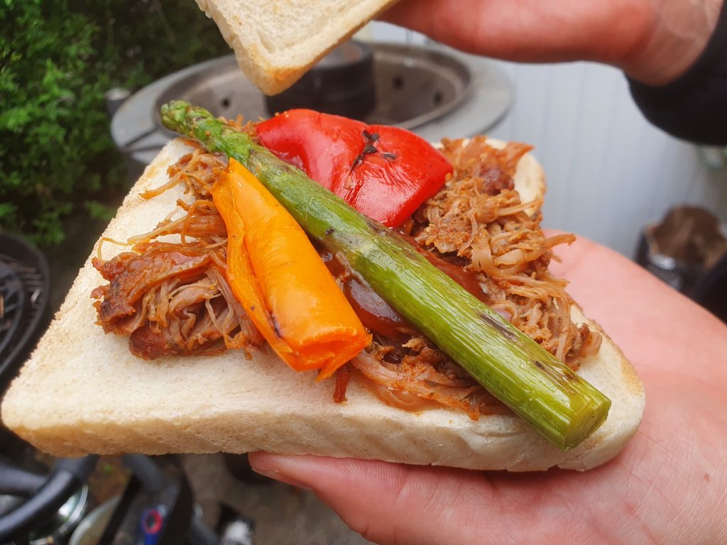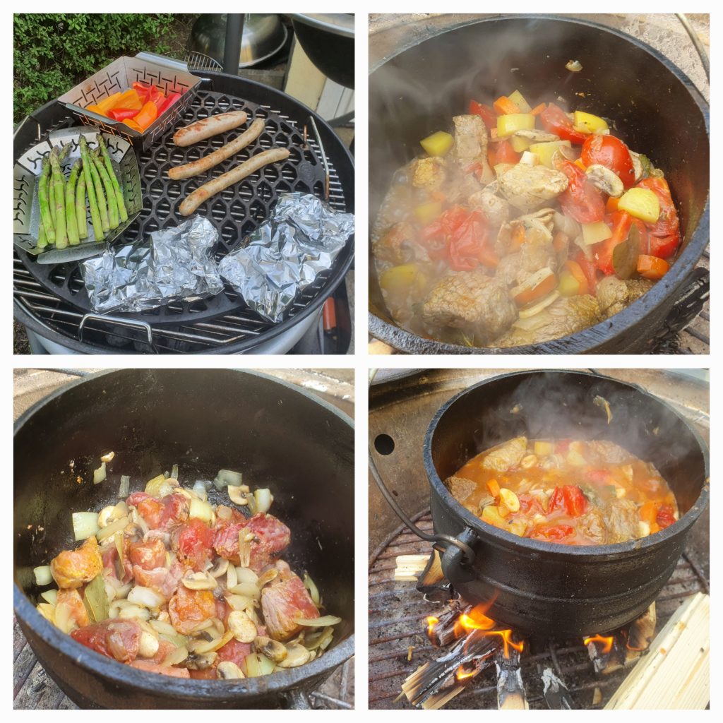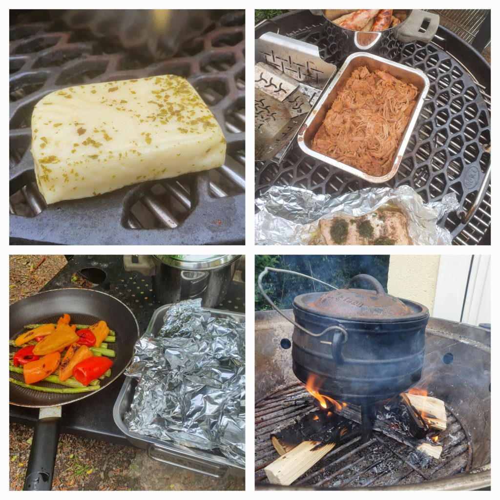 Pulled Turkey mit BBQ-Soße und GrillgemüseLachs und Grillkäse an Grillgemüse und KartoffelsalatPotjie-Kesselgulasch