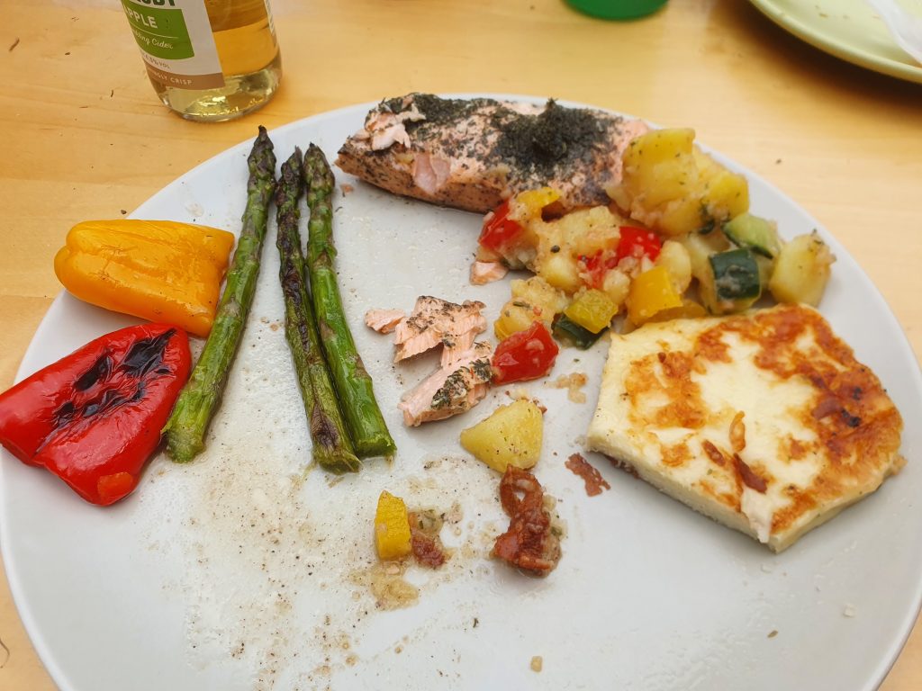 Ein gelungener Grillnachmittag war das gestern. Es gab alles: Lachs, Pulled Turkey, Bratwurst, Kesselgulasch, Grillgemüse, grünen Spargel, Grillkäse und natürlich Salate und Knabbergemüse. Von all diesen ultraleckeren Sachen ist quasi nichts übrig geblieben. Macht Lust auf eine Wiederholung. Dann wird es zusätzlich Sommerkino an der Garage geben. 🙂