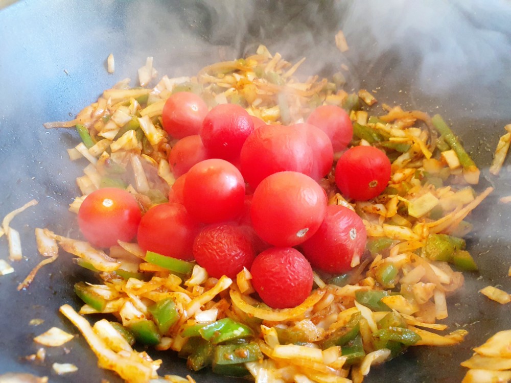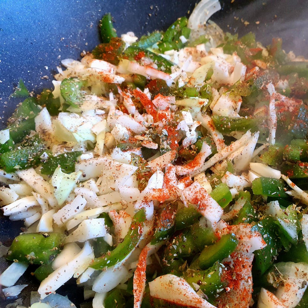 Man nehme: alles, was im Kühlschrank noch so da ist und weg muss. Dann kräftig in Olivenöl, Zwiebeln und Knoblauch anbraten und mit Grünzeugs garnieren. Schmeckt immer.