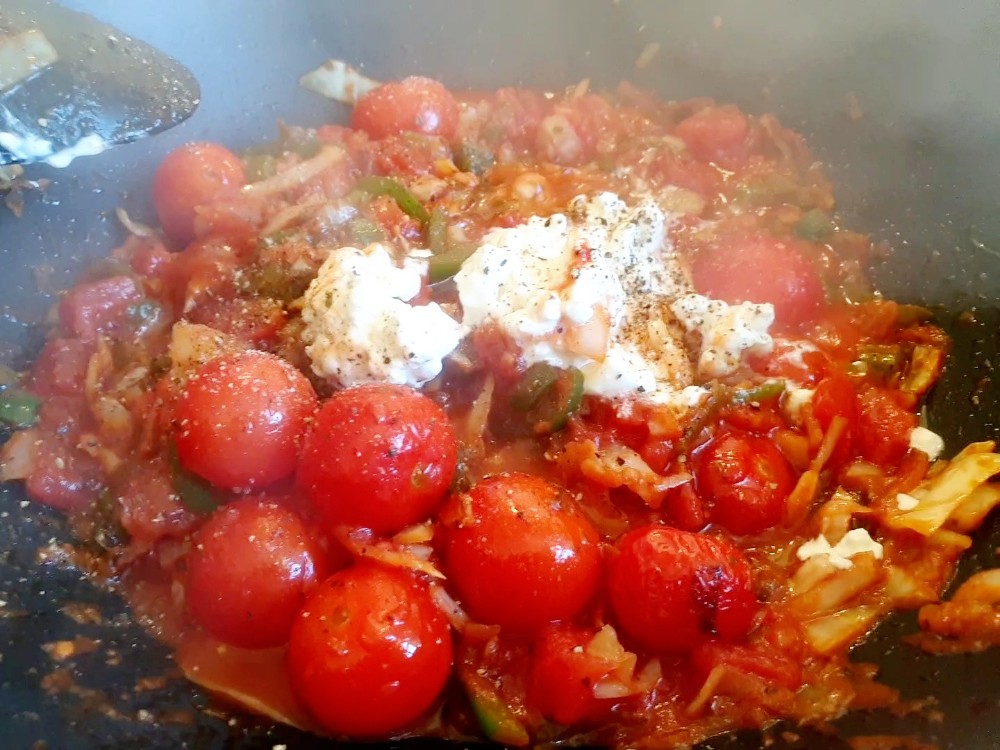 Diesen Auflauf von Nudeln und gebratenem Weißkraut, Zucchini und Paprika mit ein wenig Brokkoli habe ich heute ganz spontan abends fabriziert. Die Hausgemeinschaft hat es genossen, es war reichlich. 😋