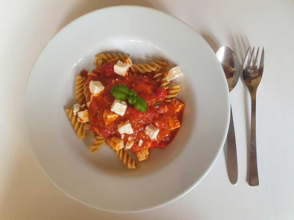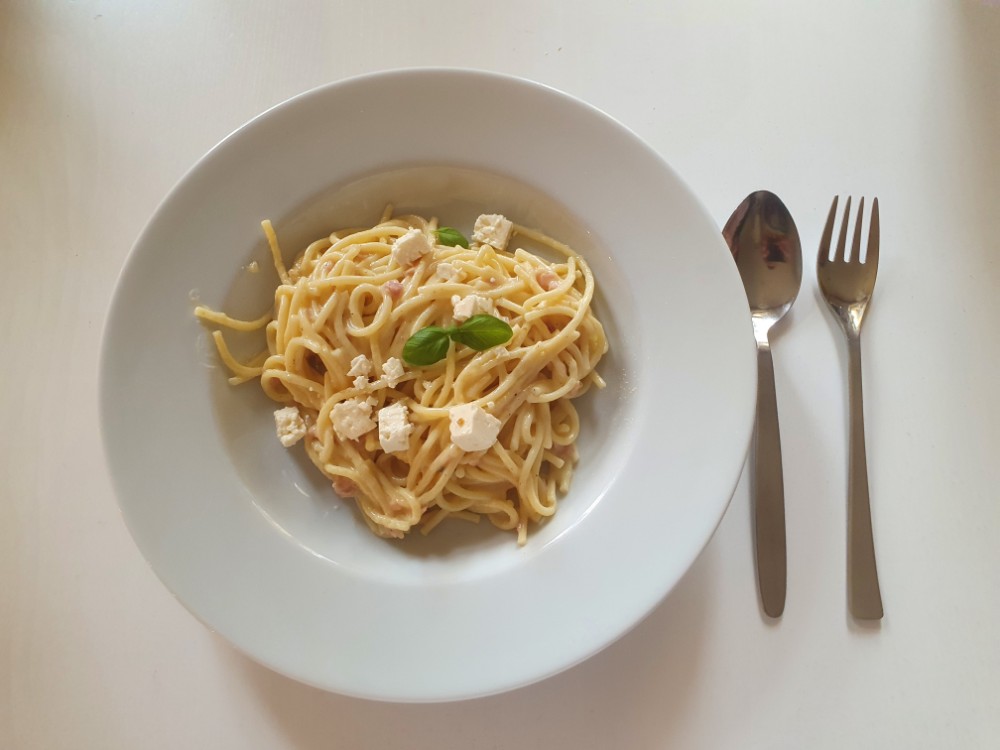 Auf die Abwechslung bei der Soße kommt es an. Carbonara und Paprika-Pesto gehörten heute zu meinem Experiment. Gekrönt auf beiden Varianten wurde es mit weißem Käse. Ich liebe es! 😋