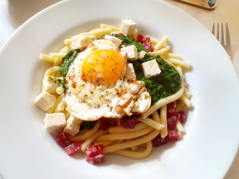 und Ei. Paprikapesto verfeinert das ganze enorm. Klasse