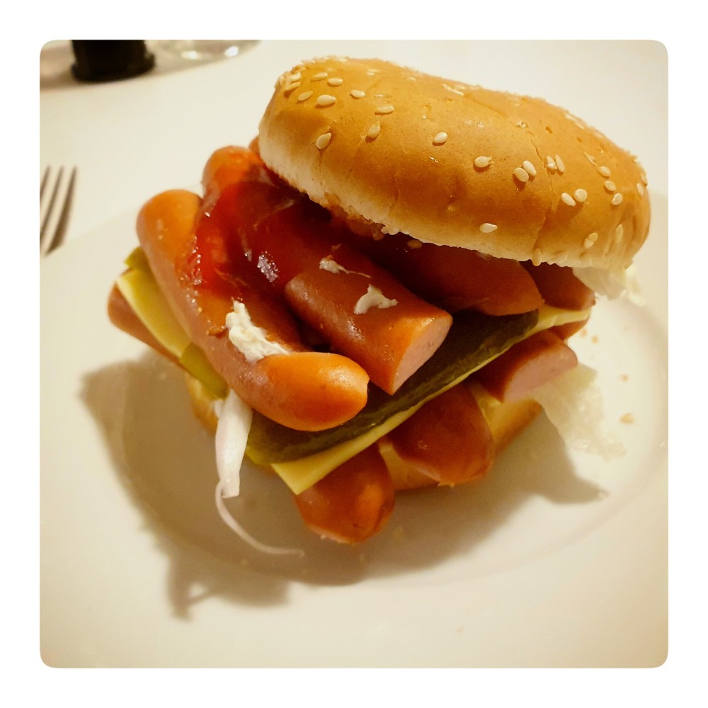 Da es am Wochenende schon Burger gab (mit richtigen Paddies) und noch Brötchen übrig waren, habe ich nach einer Impro-Version gesucht. Das ist das Ergebnis. Einfach paar Wiener warm gemacht und aufgeschnitten als Paddies genutzt. Auch lecker.