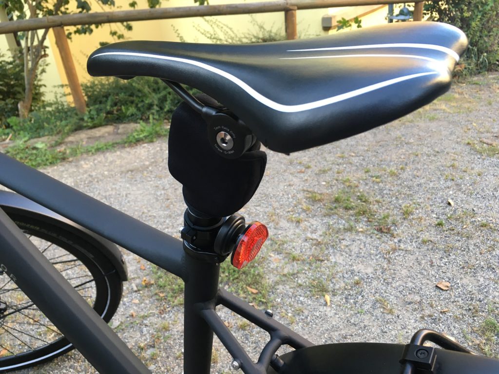 Meine Elektro-Nachrüstung – die Blinker und das Bremslicht – funktioniert seit dem Einbau tadellos und wurde neulich von einem Polizisten mit einem dicken Daumen hoch honoriert. Er hatte mich im Halbdunkeln mit meiner leuchtenden Warnbekleidung durch Piechen radeln sehen. Was mir allerdings seit ein paar Wochen schon total auf den Senkel geht ist der quietschende Sattel. Ich habe schon mehrfach versucht, dem Thema mit Schmierung zu begegnen, leider ohne Erfolg. Der Sattel ist aber auch schon alt und wurde vom alten Fahrrad umgeschraubt. Na vielleicht gibt es zum Geburtstag ja einen neuen.