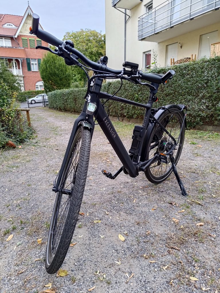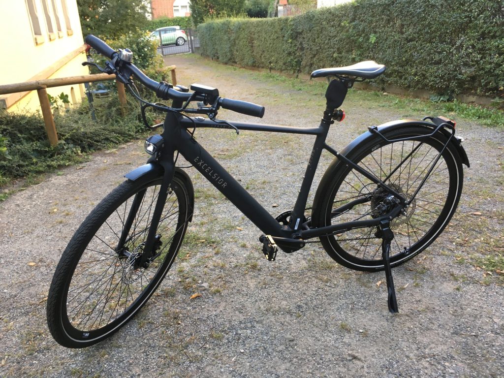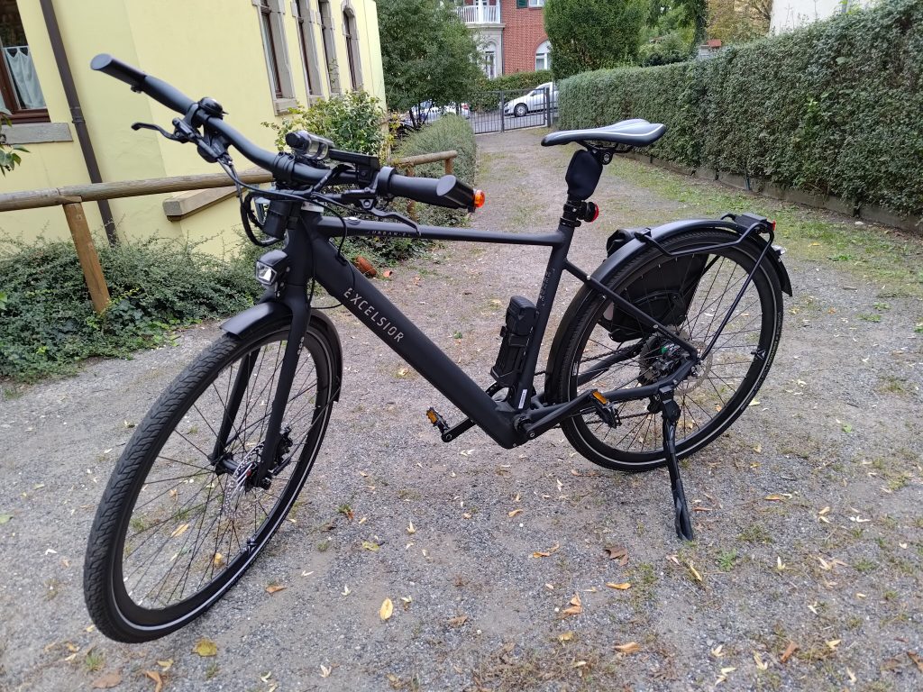 Was ich mir also vorstelle ist ein leichtes elektrifiziertes Bike für den täglichen Arbeitsweg durch die Stadt. Bei Recherchen in diesem Segment bin ich auf den Hersteller Excelsior aufmerksam geworden und habe das „Urban-E“ als meinen Favorit auserkohren. Nach Lesen einiger Testberichte war mir klar – dieses muss es sein! Es ist alles dran, was ich vorher einzeln dazukaufen musste – Licht, Schutzbleche, Ständer und natürlich der elektrische Antrieb. Klar, habe ich auch bereits darüber nachgedacht, was noch alles nachgerüstet werden müsse. Zunächst wird aber nur die Halterung für das Fahrradschloss am Flaschenträger montiert. Weiter möchte ich erst mal nicht überlegen, erstmal muss es beschafft werden. Das Modell 2023 (Akku mit 410Wh) habe ich bei zwei Händlern in der Nähe angefragt und freue mich schon darauf, es mal probefahren zu dürfen. Doch zuvor lese ich noch ein paar Kommentare und Tests über das Bike. Eine Testerin kam zu folgendendem Fazit: