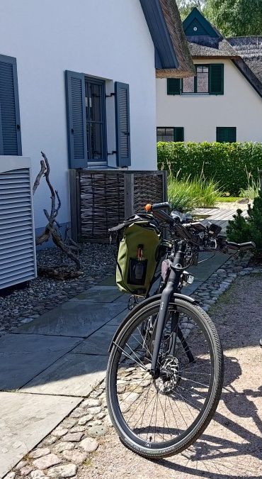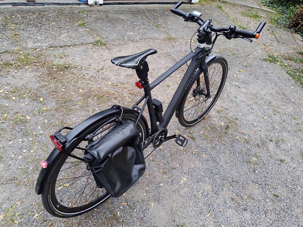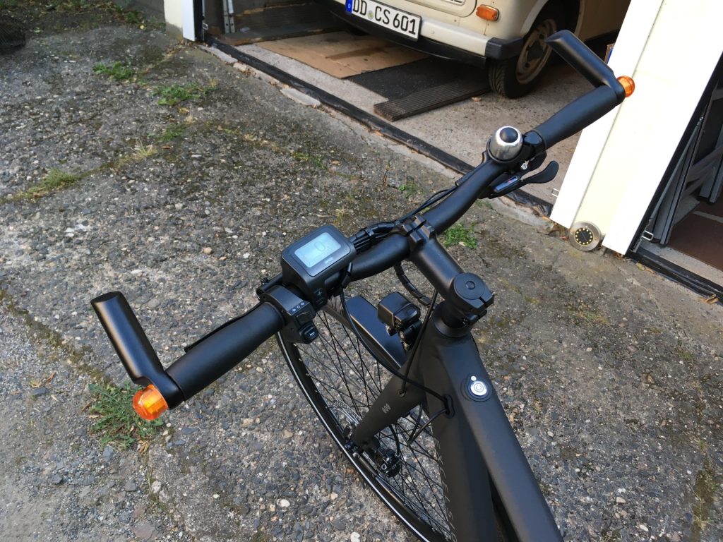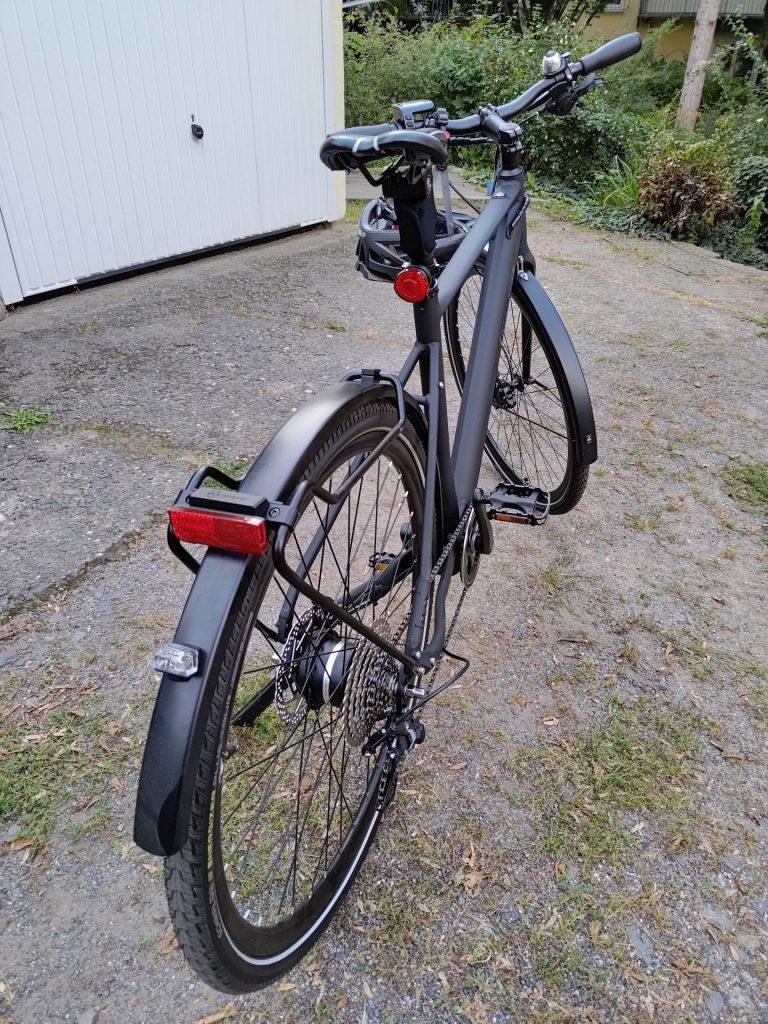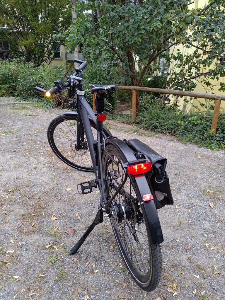 Die Zeit kam, sogar am nächsten Montag schon, und Rad kam dann am Donnerstag. Es hätte gar nicht besser laufen können. Meine Anfrage beim Fahrrad-Großhändler blieb unbeantwortet, dafür hatte ich ein angenehmes Gespräch mit Steffen vom kleinen lokalen Händler „Der Dynamo“. Er bot mir die Möglichkeit, das Rad probezufahren und ich hatte auch noch das Glück, dass gerade 2023-er Modelle im Lager bei denen angekommen waren. Die Probefahrt war erwartungsgemäß genial, ich fühlte mich „wie zu Hause“, auch wenn das Testrad eine unpassende Rahmenhöhe hatte. Steffen bot mir an, eines der Räder aufzubauen (die werden immer so geliefert, dass man sie gut in einem rechteckigen Karton transportieren kann) und dann mit der korrekten Rahmenhöhe noch einmal probezufahren. Ich sagte sofort zu und konnte am Donnerstag das Bike noch einmal in der richtigen Größe testen. Nach zwei Runden um den Block stand meine Entscheidung fest, den genannten Preis dafür zu bezahlen. Natürlich hatte ich alles entsprechend vorbereitet und bereits meinen Helm und das Fahrradschloss im Rucksack mitgebracht. Nun brauchte ich mich nur noch draufzusetzen und nach Hause zu radeln. Was für ein Genuss, so ein leichgängiges Bike! Ich probierte alle Unterstützungsstufen und die Beleuchtung aus. Als ich zu Hause ankam, war es ein sehr angenehmes Gefühl, auch wenn ich durch den starren Rahmen – am Urban-E gibt es keine Federung – jedes Schlagloch in der Wirbelsäule spürte. Ich bin wirklich zufrieden und glücklich, diese Entscheidung getroffen zu haben. Check.