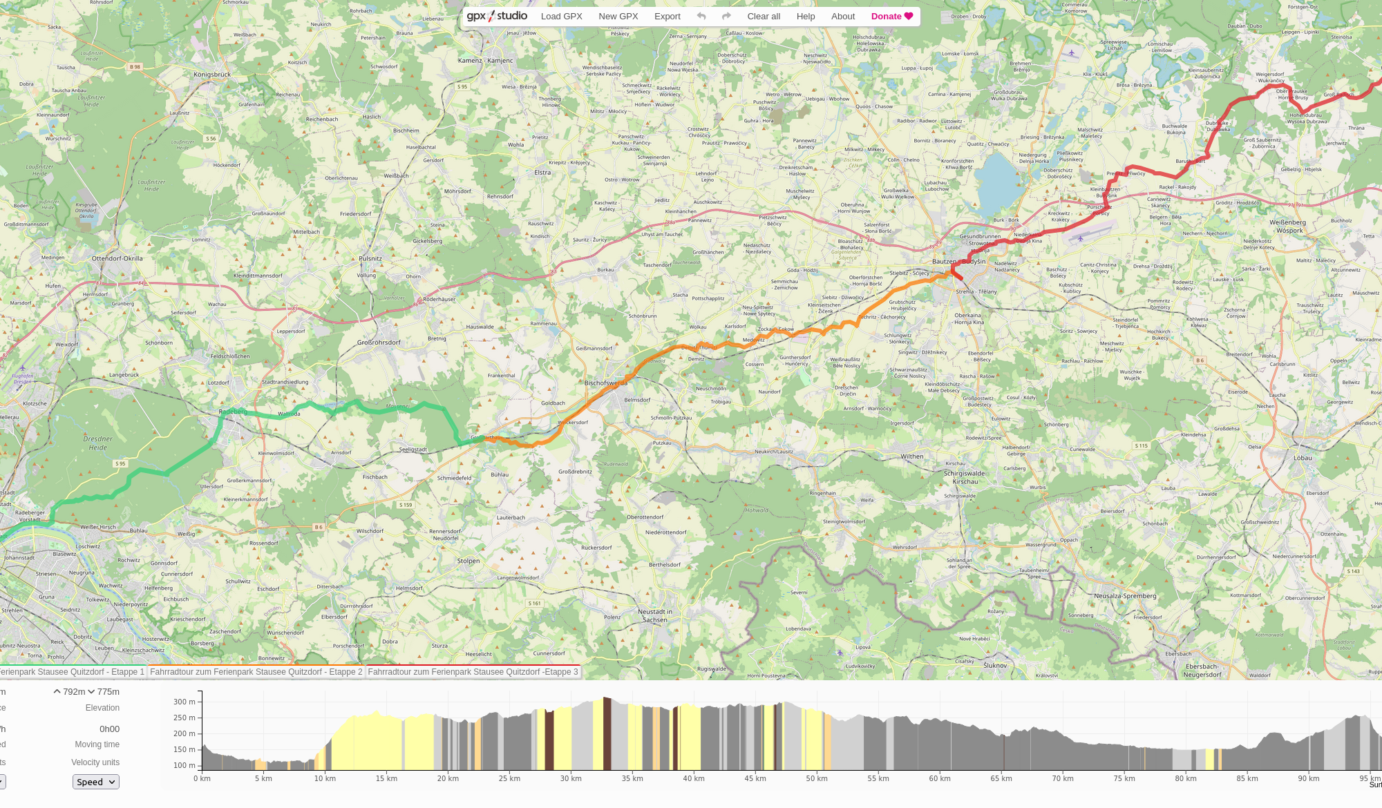 Nun ein paar Worte zur Strecke. Meine Planung sieht folgende Routenführung vor: Von Radeberg geht es über die Massenei (Wald) bis nach Großharthau. Weiter gehts entlang der Eisenbahnstrecke nach Bischofswerda bis wir schließlich in Demitz-Thumitz ankommen. Über Zockau fahren wir nach Bautzen. Leider sind auf dieser Strecke einige Straßen dabei, wobei wir hier operativ eine Alternative über Wald-/Radwege suchen sollten. Das werden wir aber erst vor Ort sehen können. Nach einem großen Stop in Bautzen geht es weiter nach Dubrauke, wo wieder ein schönes Waldstück anfängt. Hinter Groß Radisch liegt schon Kollm und dann sind es nur noch ein paar Meter bis zu zum Ferienpark Quitzdorf.