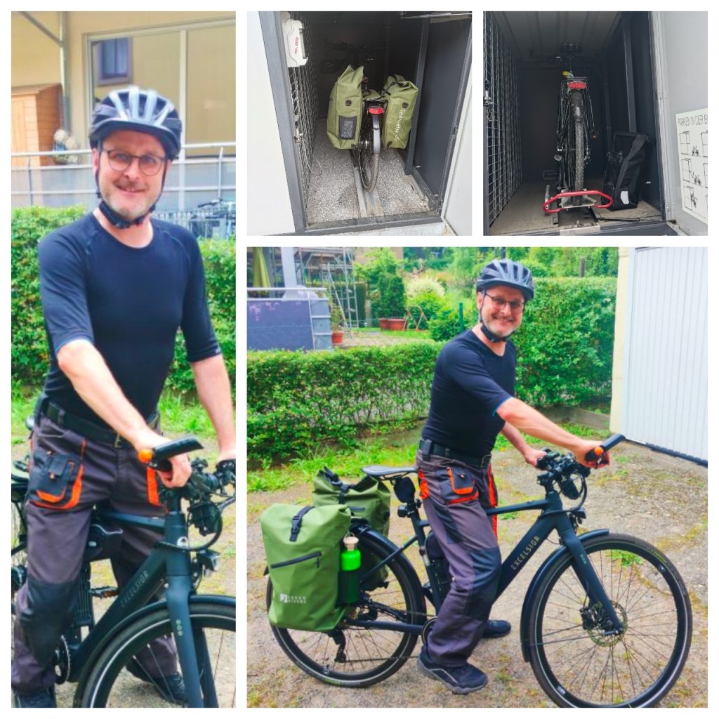 Am 10.06.2024 geht es los, 15 Radler starten von Radeberg aus in Richtung Kollm. Die Strecke hat nach aktueller Planung eine Länge von 77km. Damit möglichst alle diese Tour überstehen, haben wir uns darauf geeinigt, in Radeberg zu beginnen. Die Zugverbindung vom Hauptbahnhof bis zum Bahnhof Radeberg habe ich gecheckt. Alle 30min. fährt entweder die S8 oder die RB61 (Trilex). In der S-Bahn können leider nur 6 Fahrräder mitgenommen werden, die Plätze sind recht schnell vergeben. Mit dem Bildungsticket könnt ihr den gesamten VVO befahren und auch euer Fahrrad mitnehmen. Ohne Bildungsticket kostet die Fahrt 5,70€ (2 Tarifzonen) + 3,30€ Fahrradtageskarte Verbundraum. In der Besprechung am 15.04. hatten wir die Möglichkeit in den Raum geworfen, die Räder bereits am Sonntag nach Radeberg zu bringen und am Bahnhof anzuschließen. Nach gestriger Testfahrt kann ich mitteilen, dass es dort ausreichend viele überdachte Fahrradbügel und auch Fahrradschließfächer gibt. Die Boxen können über die Webseite https://www.bikeandridebox.de zum Preis von 1€/Tag gebucht werden. Hier ein paar Fotos.