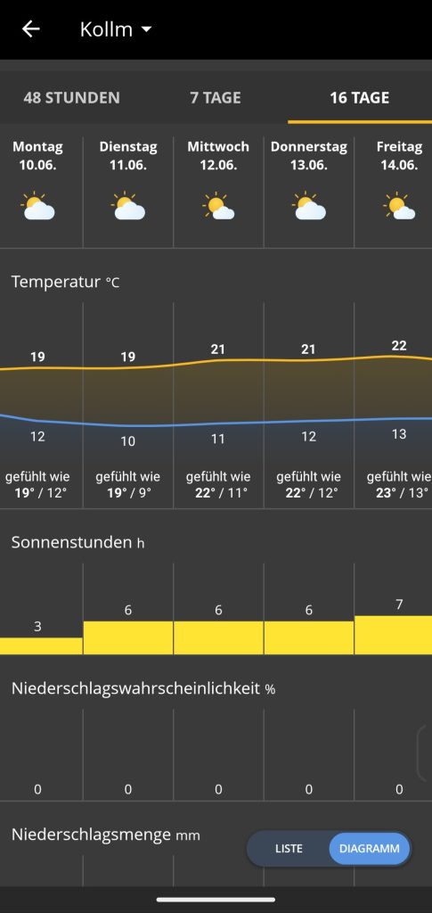 Die Aktivität habe ich mit meiner neuen Fitness-Watch getrackt. Leider zeigen die unterschiedlichen Tools auch unterschiedliche Werte an, in etwa sind wir jedoch 40km auf dem Fahrrad unterwegs gewesen. Die lange Dauer von über 6 Stunden resultiert aus dem Export nach Strava und der Berechnung und Darstellung der GPX-Datei über meine Webseite. Reine Fahrtzeit war 3:43 h – der Rest ist Pausenzeit, wobei ich die Aufzeichnung pausierte.