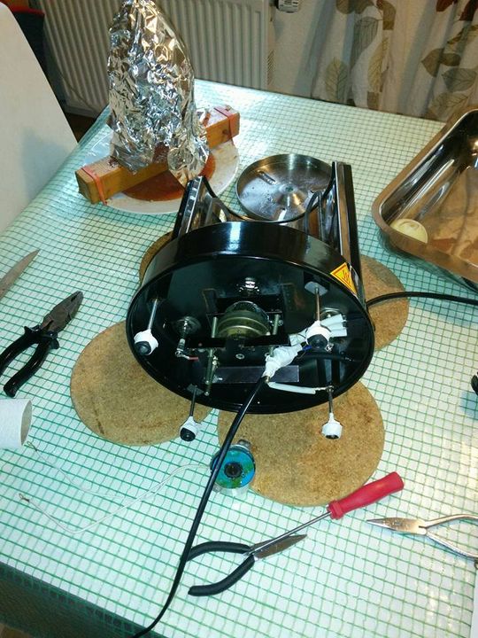 Verdammt. Der SpieĂ dreht sich nicht mehr. đ Motor defekt. Nur gut, dass der „Bast(el)i“ in mir noch nicht ganz aufgegeben hat. Ich bin zwischen Dönerbrote besorgen und SoĂe anrĂŒhren fix in meinen Keller gehĂŒpft und habe aus einem alten Motor einer Uhr, dem Getriebe des Grills und etwas Metall einen Ersatz gebaut. Und ja, ohne HeiĂleim… (fĂŒr alle Kenner). Leider passt die neue Konstruktion nicht ganz in das GehĂ€use des Grills, so dass ich ihn höherlegen musste. 4 GewindestĂ€be und ein offener Boden sind nun zusammen mit dem neuen Motor dafĂŒr zustĂ€ndig, dass die Party nicht ausfallen muss. Juhu!!