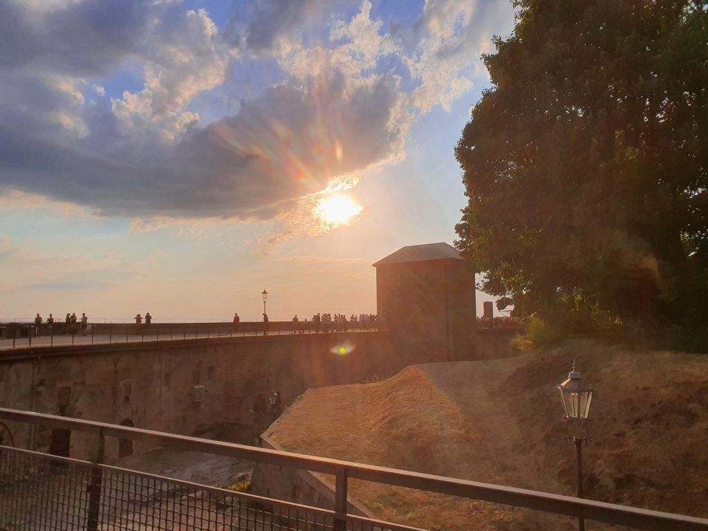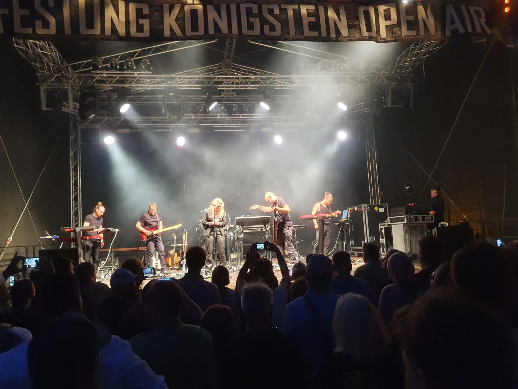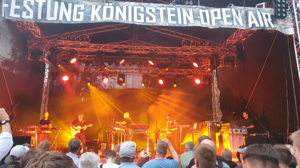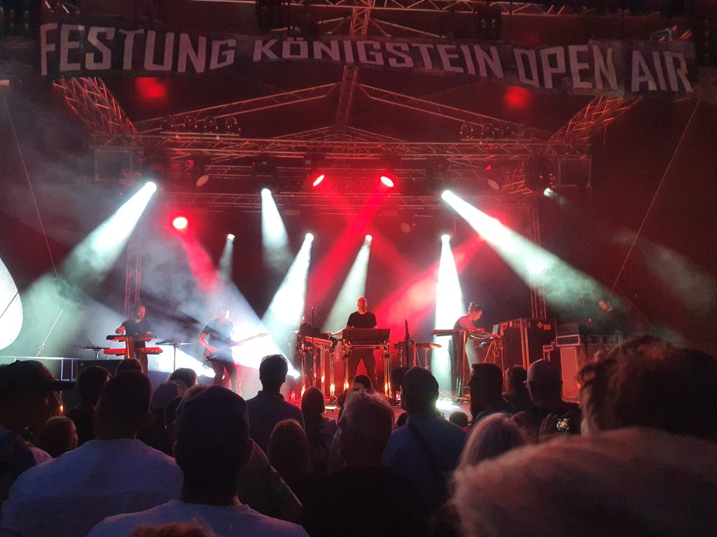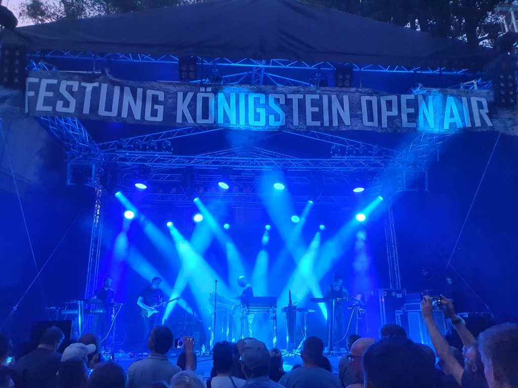 Zum Glück war mehr als eine Stunde Zeit um den wunderbaren Klängen des Elektronikkünstlers Schiller zuhören zu können. Nachdem wir im Jahr 2007 bereits schon einmal ein Konzert auf der Festung genießen durften, haben wir uns riesig gefreut, dass 2020 dort wieder ein Open Air stattfindet. Natürlich musste auch dieses Konzert aufgrund der Pandemie verschoben werden, sogar zwei Mal. Der neue Termin am 05.08.2022 passte wunderbar, genau so gut wie das Wetter. Es war nicht zu heiß, regnete nicht, niemand war krank und die Kinder kümmerten sich selbst. Das waren perfekte Voraussetzungen. Dazu kam noch, dass wir bei unseren Nachbarn im Auto mitfahren konnten und uns nicht selbst um einen teuren Parkplatz kümmern mussten. Auf der Festung angekommen, wurden noch paar Bilder in der Abendsonne geschossen, Fleisch und Bier besorgt und dann begann die Show sehr pünktlich um 20 Uhr. Die aktuelle Crew hatte neben Christopher von Deylen einen Gitarristen, einem Sythie-Effekt-Mann und einem Schlagwerker eine Sängerin an Board. Dieses absolut stimmiges Ensemble sorgte für zwei Stunden feinsten Musikgenuss. Die Anlage war für meine Begriffe etwas spärlich bemessen, da ich uns aber einen bühnennahen Platz organisiert hatte, reichte es am Ende doch. Zumindest pfiffen die Ohren nicht wie bei den Indoor-Veranstaltungen in der Messe Dresden in den Jahren 2012, 2016 und 2019. Was wir alle etwas seltsam fanden war, dass es dort keinen Merchandise-Stand gab. Ein neues T-Shirt hätten wir alle gern mitgenommen. Nach Ende des Konzerts wanderten wir wieder zum Fuße der Festung um die Wartezeit am Parkautomaten mit einer Bratwurst und einem alkoholfreien Weizen zu überbrücken.