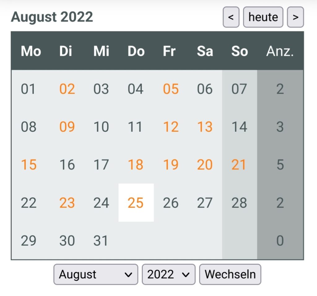 Doch nicht nur Radeln und Laufen wurde im Urlaub betrieben, es stand auch ein Sascha Huber-Workout / Körperformen Rückentraining und Rudern auf dem Programm. Immerhin sind in diesen zwei Urlaubswochen vom 15.08. – 28.08.2022 ganze 7 Trainingseinheiten zusammengekommen.