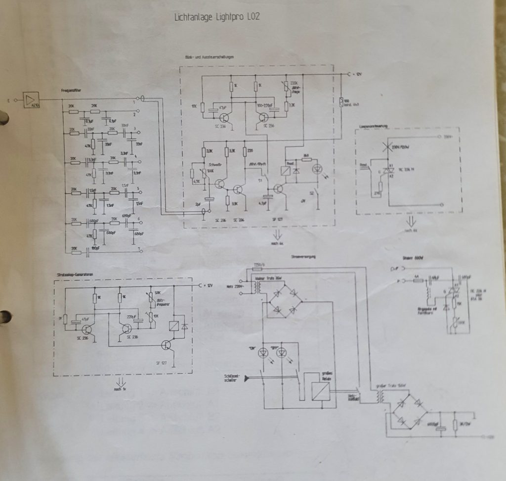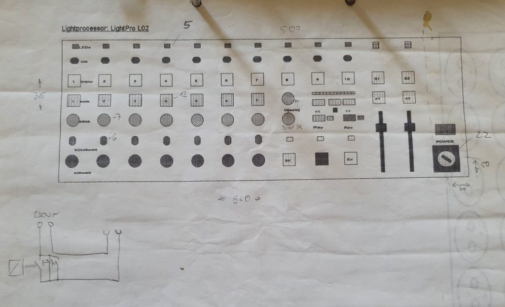 Um aber richtig Party machen zu können, brauchte es auch eine vernünftige Lichtanlage. Es sollte im Raum bunt blinken, Stroboskope sollten blitzen und ich brauchte eine Möglichkeit, das Ganze individuell zu steuern. Zu dieser Zeit waren käuflich zu erwerbende elektronische Fertiggeräte unerschwinglich für mich. Ich war ja noch Schüler und hatte kein Einkommen. Das Taschengeld hat aber für das eine oder andere Elektronik-Bauteil ausgereicht. So stellte ich als pfiffiger Elektronik-Nerd das nächste Projekt auf die Beine. Es sollte ein Lichtsteuerpult werden. Nach einer ersten Version, die relativ spartanisch daherkam, entwickelte ich die Lichtanlage Lightpro L02. Ausgestattet mit mehreren Leistungsdimmern, Blink- und Lauflicht, Aussteuerungsanzeige sowie zwei Stroboskop-Generatoren konnte man das Gerät schon fast professionell einsetzen. Ebenfalls eingebaut in ein Holzgehäuse hat es später sogar noch für die Beleuchtung im Theater getaugt. Zum Ende meiner Schulzeit war ich Theatertechniker beim Schülertheater und war mit meinen Selbstbaugeräten komplett unabhängig von den Anlagen in den Theaterhäusern.