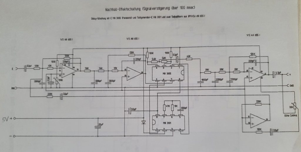 Später kamen noch diverse Effekt-Schaltungen dazu und wurden in ein Holzgehäuse eingebaut. Über das selbstgebaute Mischpult habe ich schon im Beitrag Technik ein paar Worte verloren.