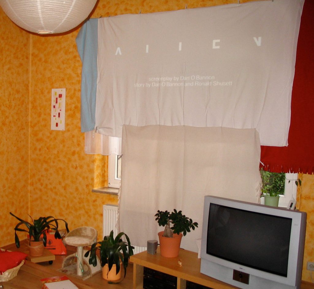 Es war ein wunderbarer Abend. Müssen wir unbedingt wieder mal machen. So ein großes Fernsehbild ist schon was Feines! Da kommt einem der eigentlich große Fernseher jetzt viel zu klein vor. – Nun, werd ich mir wohl mal einen Beamer und eine Leinwand kaufen müssen. ![]()