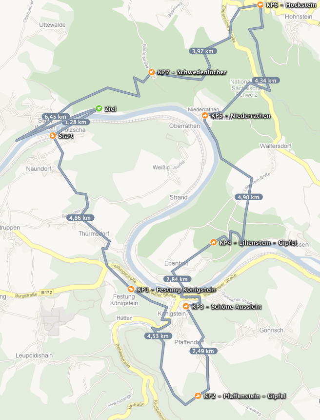 Los ging es um 10 Uhr auf dem Marktplatz Dohna, wo anschließend auch das Ziel war. Die ersten 10km sind ganz schön anstrengend, denn es geht wirklich steil bergauf. Die Kurve ist auf der running-Seite zu sehen.