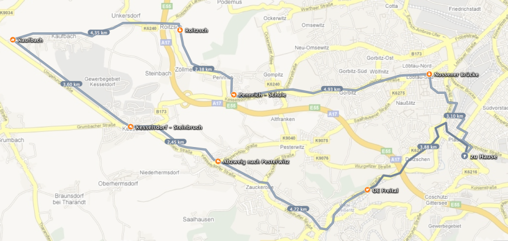 Heute morgen, nachdem die Katze etwas bemuddelt wurde, habe ich mich an den Rechner gesetzt und kurz mit Bernd geredet. Dabei haben wir festgelegt, Rennen zu gehen. Also gings um 10 Uhr los und ich habe die Strecke ausgesucht. Vielleicht bin ich anfangs doch wieder etwas schnell losgelaufen, aber ich bin heute sehr stolz auf mich, daß ich den ganzen Berganstieg bis zur Karlsrucher Straße hoch (bei Dr. Quendt im Gewerbegebiet) ohne Unterbrechung und mit wenig Anstrengung geschafft habe. Oben ging es dann gut weiter, aber dann, am Gewerbegebiet, wo es wieder bergab geht, mußte ich gehen. Bei Kilometer 4 hat mein Knie rebelliert. Schade. Das werde ich wohl noch bißchen mehr trainieren müssen. Aber nach einer kurzen Verschnaufpause ging es weiter und dann bis runter nach Kaiz. Dort wieder den Berg rauf bis zum Kaufland und dann haben wir uns getrennt. Bernd ist an den Rohren zurück nach Hause und ich den üblichen Weg über den Plauenschen Ring. Aber ab dort mußte ich auch wieder Stückchen gehen, das Knie leider. Es sind trotzdem 7km gewesen, die ich geschafft habe in einer Zeit von 50 Minuten – heute wieder ein längerer Lauf. Hier die Strecke und hier die Daten der Uhr.