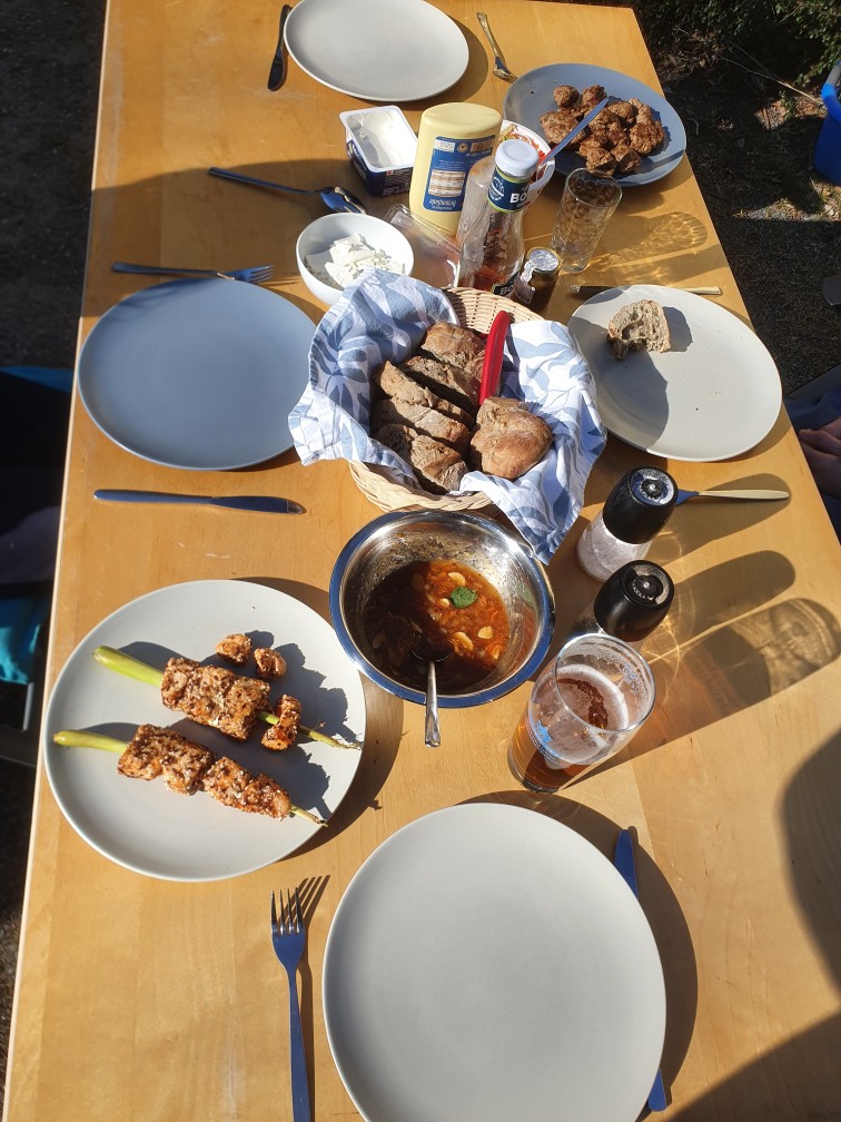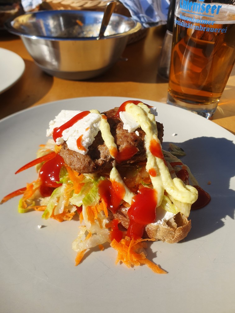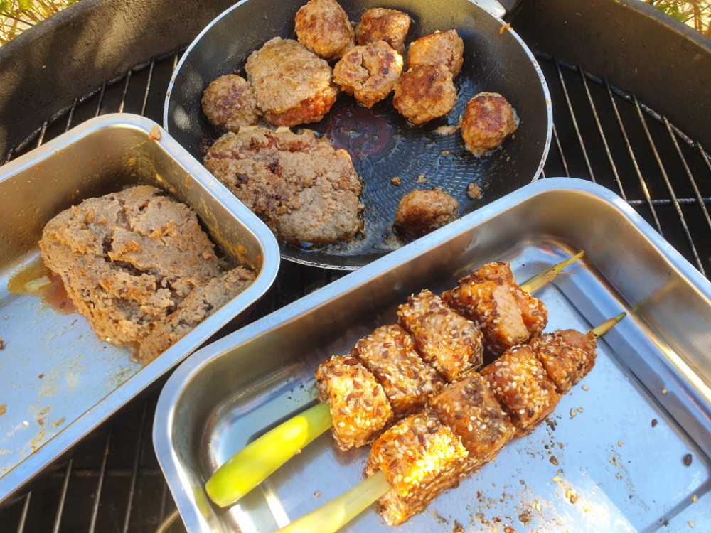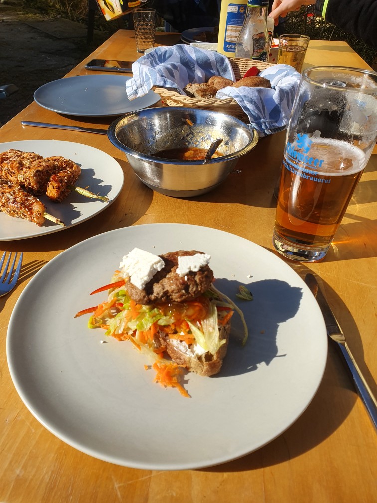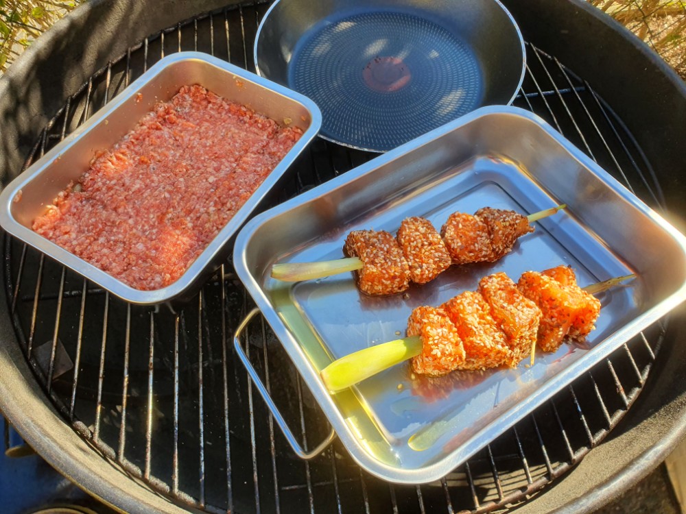 Lachsspieße leicht asiatisch angehaucht habe ich heute mal probiert. Und da nicht alle Familienmitglieder Fisch mit Sesam und Leinsamen mögen, gab es noch eine Variante mit Hackfleisch. Das Ganze wurde auf italienischem Kräuterbrot mit einer Mango-Minz-Vinaigrette und einem leichten Salat mit Weißem Käse serviert. Damit liegt die Latte der Grillspezialitäten zum Saisonbeginn schon recht hoch. Schauen wir mal, was das Jahr noch so für Leckereien zu bieten hat.