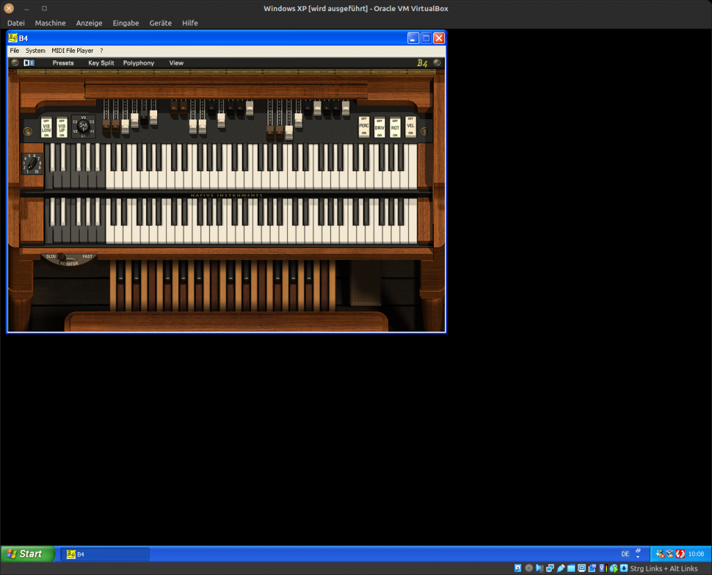 Der Vollständigkeit halber möchte ich zwei VST-Instrumente vorstellen, die ich zwar selten nutzte, die aber einen durchaus hohen Nutzen hatten. Native Instruments „Battery“ war ein Sampler mit einem Drumpad und „B4“ eine (Kirchen-)Orgel. Hätte man über MIDI kompatible Hardware angeschlossen, wären diese Instrumente quasi wie echte Instrumente spielbar gewesen. Aber solche Hardwarecontroller standen mir leider nicht zur Verfügung.