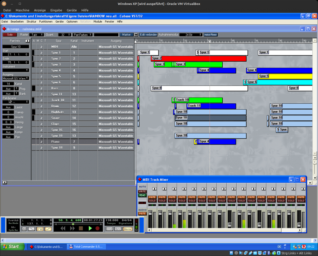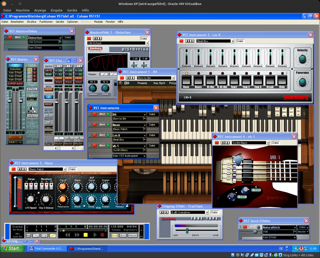 Danach kam der kreative Part einer Musikproduktion. Es galt, die Instrumente mit einem Sequencer-Programm zu arrangieren. Hier setzte ich schon immer auf Steinberg Cubase. Frühe Versionen dieses Programms funktionierten ausreichend gut genug, um die angesprochenden SoundFontBanken anzusteuern. Richtig spannend wurde es aber, als die VST-Version rauskam.
