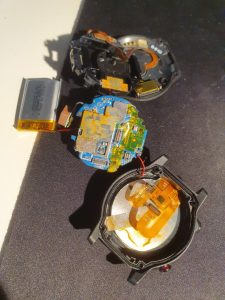 Nach dem Öffnen des Deckels, welcher mit 4 Schrauben befestigt war, entdeckte ich reichlich Wasser im Inneren. Da ich im Urlaub nicht das richtige Werkzeug hatte, konnte ich erst nach 2 Wochen das Gerät wirklich komplett auseinandernehmen. Dann habe ich versucht, mittels Reinigung, wie ich sie von Handys kenne (ich habe früher mal Handys repariert) was zu reißen. Es gelang aber nicht. Also war es um diese Uhr geschehen und ich begrub sie. Der Anschaffungspreis rechtfertigte keine weiteren komplizierten Versuche.